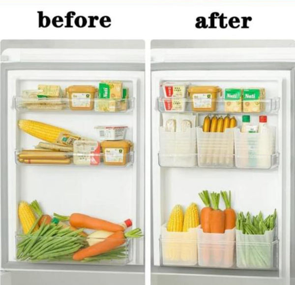 Perfect Size: The kitchen organizer container box bins are meticulously designed to fit seamlessly into the refrigerator side door, maximizing space utilization and saving valuable fridge space. By storing vegetables separately in these containers, freshness is preserved, spoilage is minimized, and healthier storage habits are encouraged. Plus, their convenient design ensures easy access with just a simple open of the fridge door.