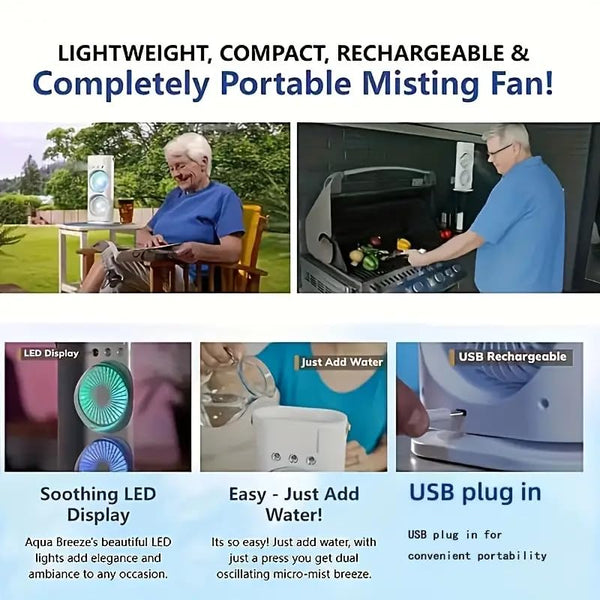 Rechargeable Automatic Rotating Dual Double Spray Mist Fan