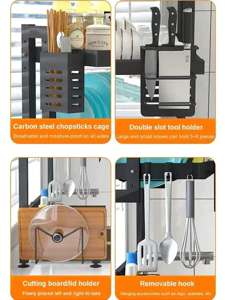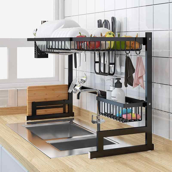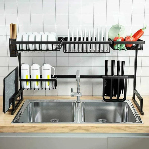 Enhance your kitchen with the sleek and highly functional Over Sink Rack — the ideal solution to declutter your countertop and keep your essentials organized and within reach. Thoughtfully designed to fit over most sinks, this rack offers convenient, space-saving storage for dishes, utensils, cutting boards, cleaning supplies, and more — all while allowing water to drain directly into the sink.
