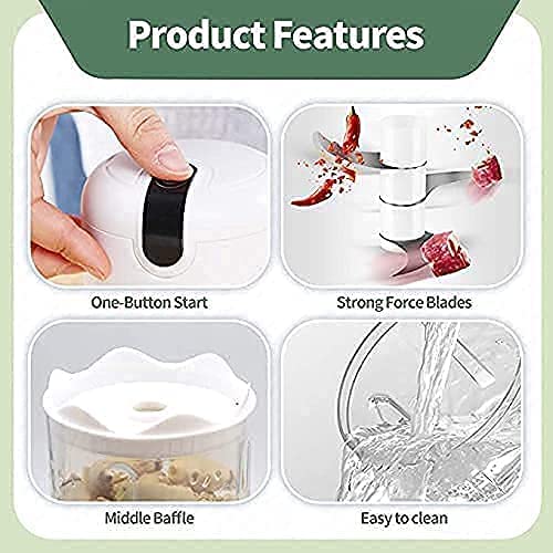 Quickly Chop: The sharp blade of the garlic chopper can quickly chop garlic, seasonings, nuts, vegetables, meat, ice cubes, etc. It is very suitable for small foods. You can use it for cooking, baby food supplement, smoothie drinks.