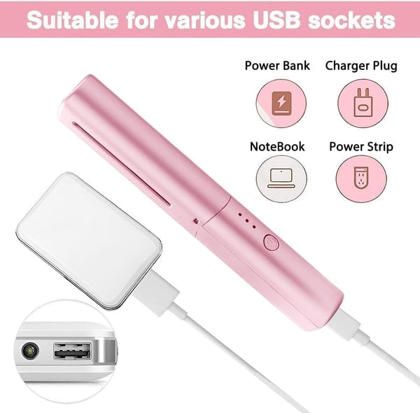【Portable Hair Straightener】Compact and lightweight mini curling iron, you can get beautiful hair anytime, anywhere! Just put it in your bag, like lipstick, and take it with you.