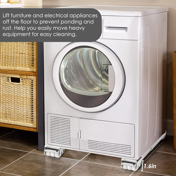 Daily Use: This mobile washing machine base is 1.6 in high which can keep the bottom of furniture appliances dry and ventilated to prevent corrosion, extending the life of your furniture. Also easy to move, daily cleaning convenient and efficient.
