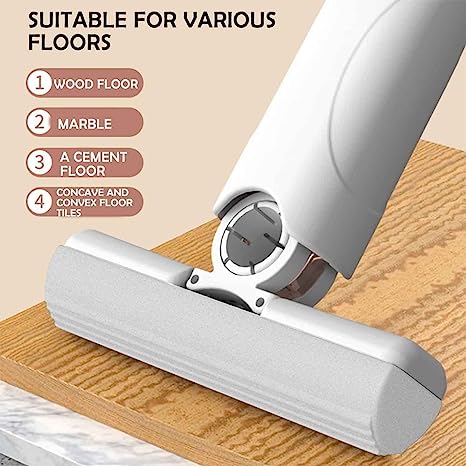 Wet and dry double use: hands-free washing, water stains can be wiped off immediately, no water stains, ring-shaped push-pull design, half folded for 180° strong extrusion, integrated washing and drainage, individually pull and press water by hand, suitable for all types of tabletops, window glass, floors, kitchens, living rooms and bathrooms. desktop cleaning sponge mop